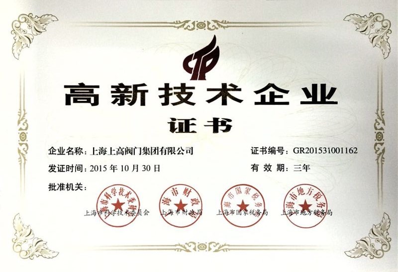上高閥門集團(tuán)憑借多項(xiàng)實(shí)用新型專利技術(shù)被授予《高新技術(shù)企業(yè)》為今后在高新技術(shù)方面的發(fā)展奠定了堅(jiān)實(shí)的基礎(chǔ),作為高新技術(shù)企業(yè)的上高閥門集團(tuán)一直以來尋求發(fā)展與創(chuàng)新,致力于一流產(chǎn)品的研發(fā)與制造,重點(diǎn)解決嚴(yán)苛工況閥門的疑難問題,持續(xù)不斷地制造出具有世界先進(jìn)水平的工業(yè)閥門為己任,為客戶提供全方位最佳的閥門解決方案,爭(zhēng)創(chuàng)成為"源自中國的世界級(jí)工業(yè)閥門提供商"。 高新技術(shù)企業(yè)的評(píng)定有嚴(yán)格的程序和條件;近年來,公司始終以“以創(chuàng)新求發(fā)展”的理念,不斷通過市場(chǎng)調(diào)研和相關(guān)單位的合作開發(fā)新產(chǎn)品及工藝優(yōu)化創(chuàng)新,為技術(shù)創(chuàng)新提供支撐的平臺(tái),加大技術(shù)開發(fā)的技術(shù)改造力度,使企業(yè)的產(chǎn)品開發(fā),工藝裝備,經(jīng)濟(jì)效益等方面持續(xù)不斷改進(jìn),為企業(yè)提升了核心競(jìng)爭(zhēng)力,充實(shí)企業(yè)創(chuàng)新發(fā)展后勁,為企業(yè)可持續(xù)發(fā)展提供強(qiáng)有力的技術(shù)支撐